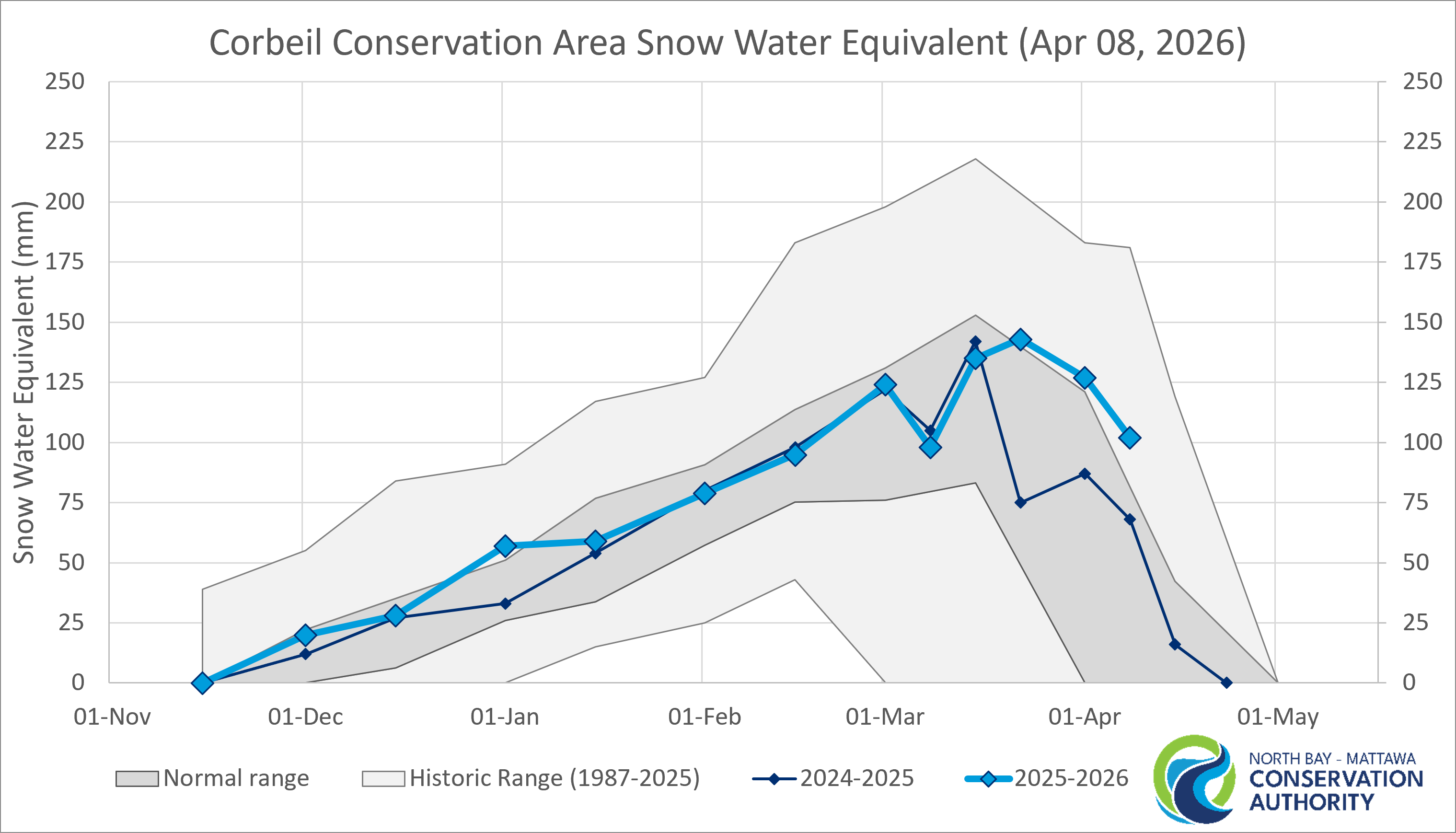 In more recent years, NBMCA has conducted additional surveys around the 8th and 23rd of March and April to prepare for spring freshet. More data is needed to report normal conditions for these supplemental survey dates.
